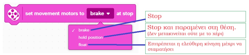 Η τελευταία εντολή ορίζει τον τρόπο που σταματά το Robot και οι επιλογές της φαίνονται στην πιο κάτω εικόνα.